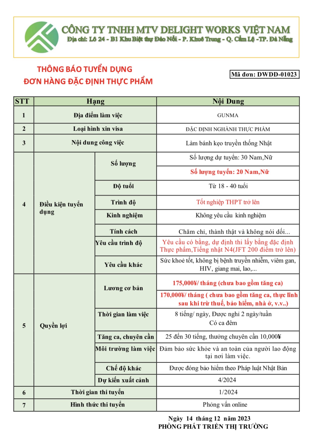 XUẤT KHẨU LAO ĐỘNG DELIGHT WORKS