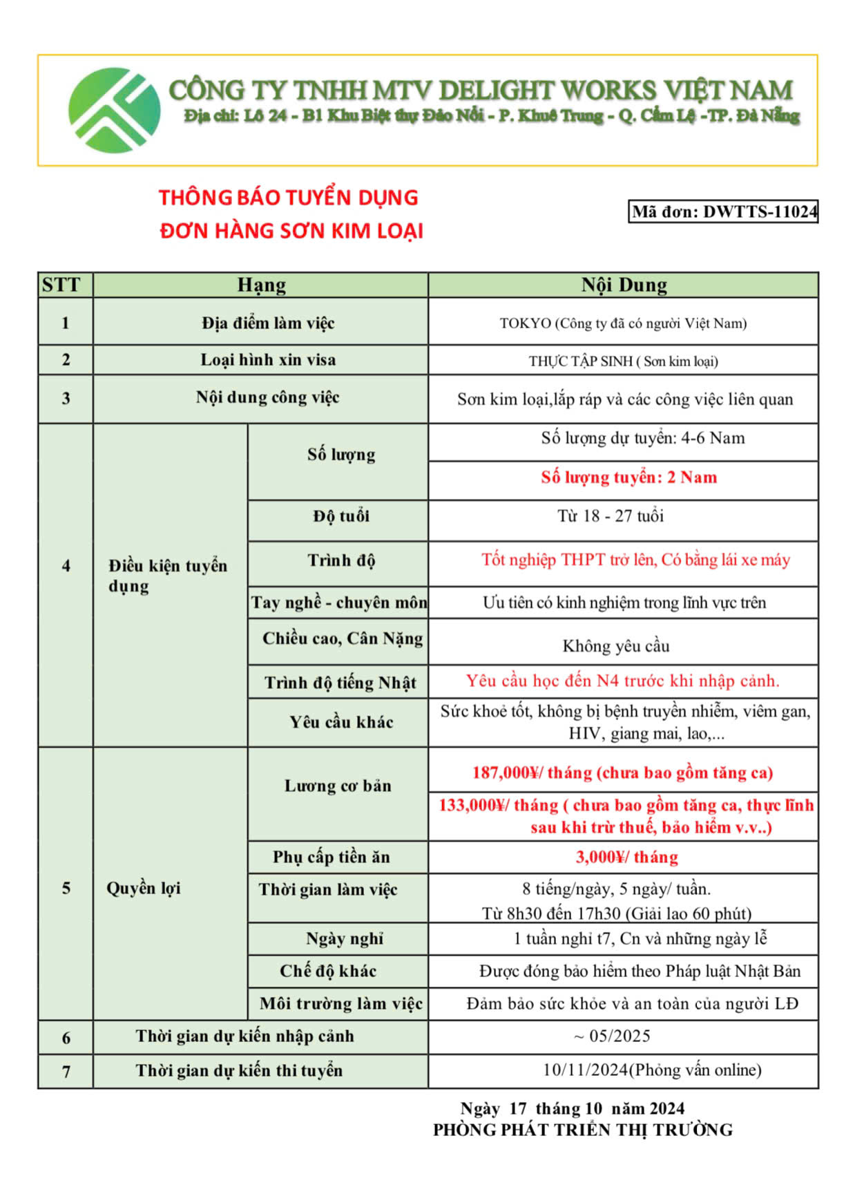 XUẤT KHẨU LAO ĐỘNG DELIGHT WORKS
