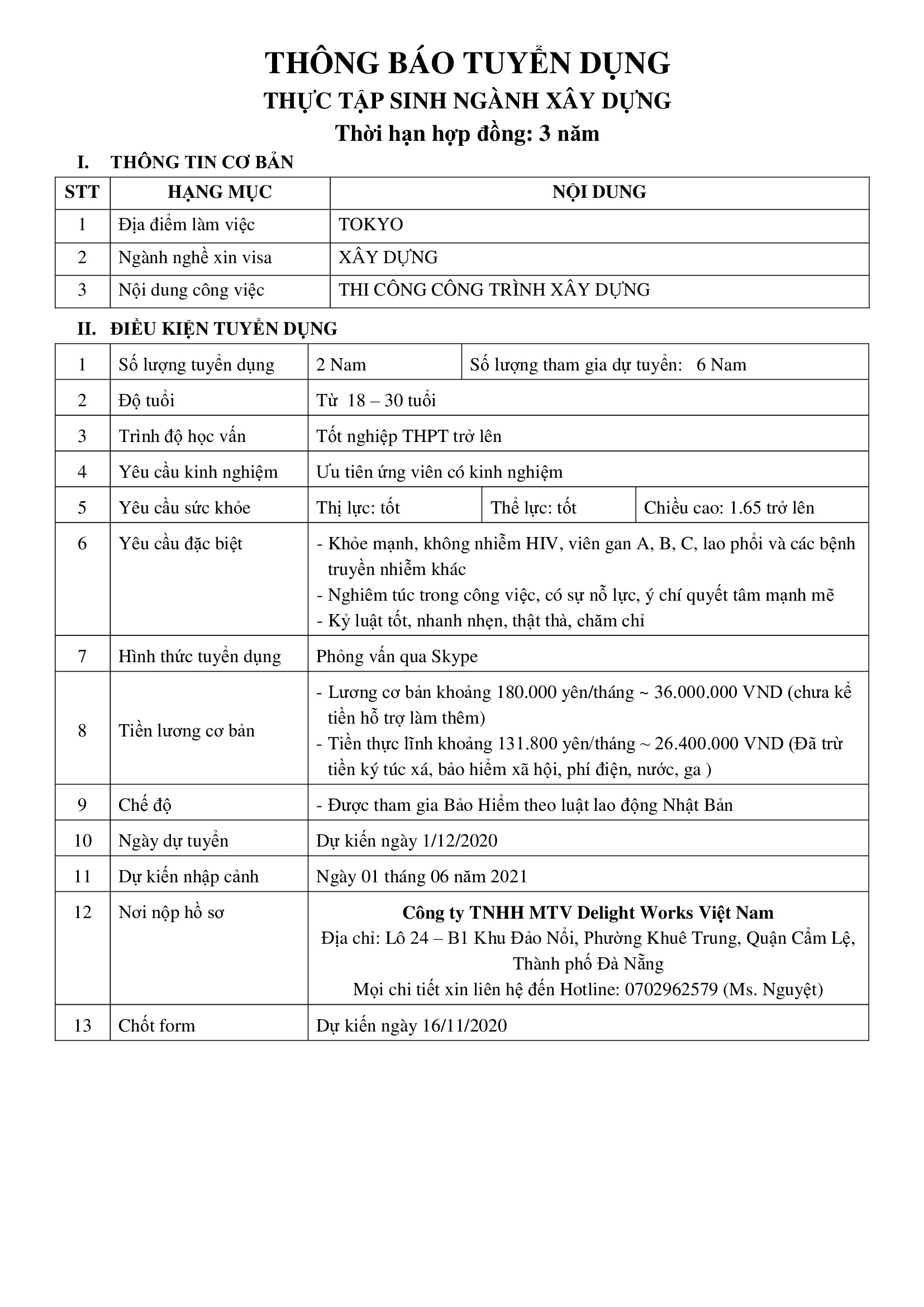 XUẤT KHẨU LAO ĐỘNG DELIGHT WORKS