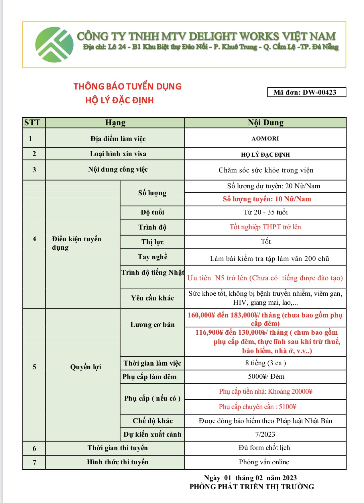 XUẤT KHẨU LAO ĐỘNG DELIGHT WORKS