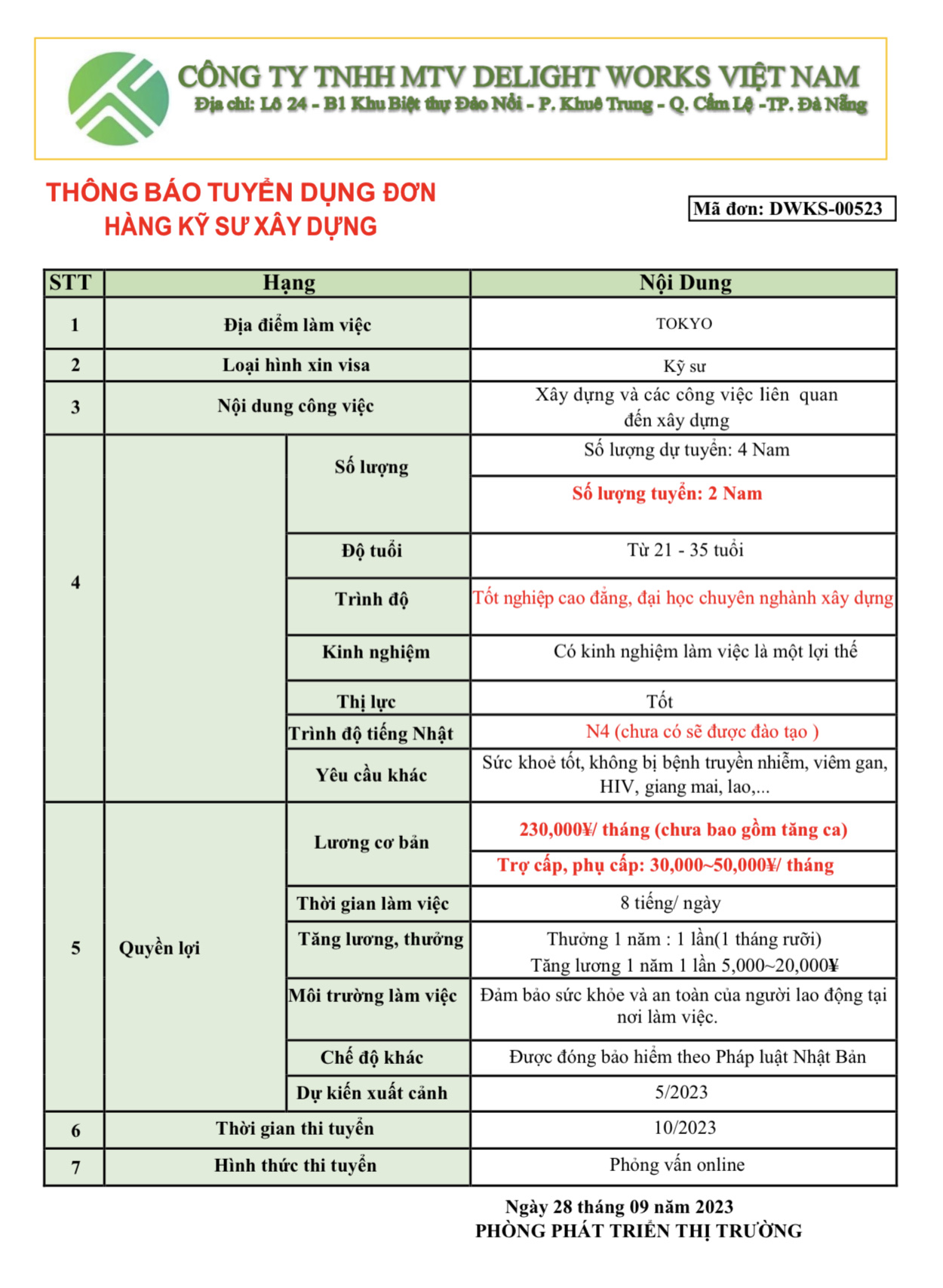 XUẤT KHẨU LAO ĐỘNG DELIGHT WORKS