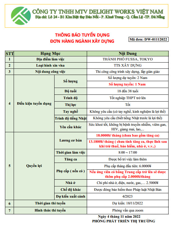 XUẤT KHẨU LAO ĐỘNG DELIGHT WORKS