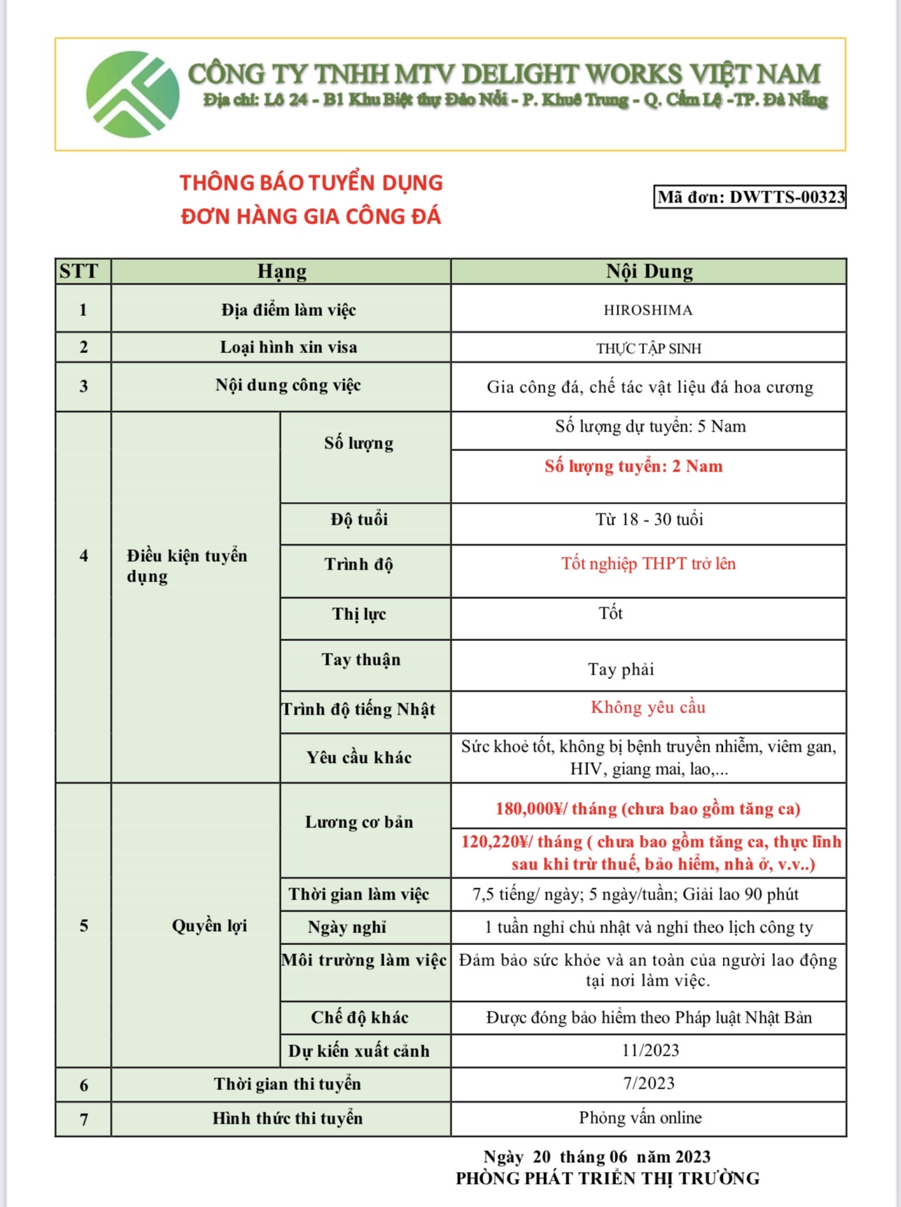 XUẤT KHẨU LAO ĐỘNG DELIGHT WORKS