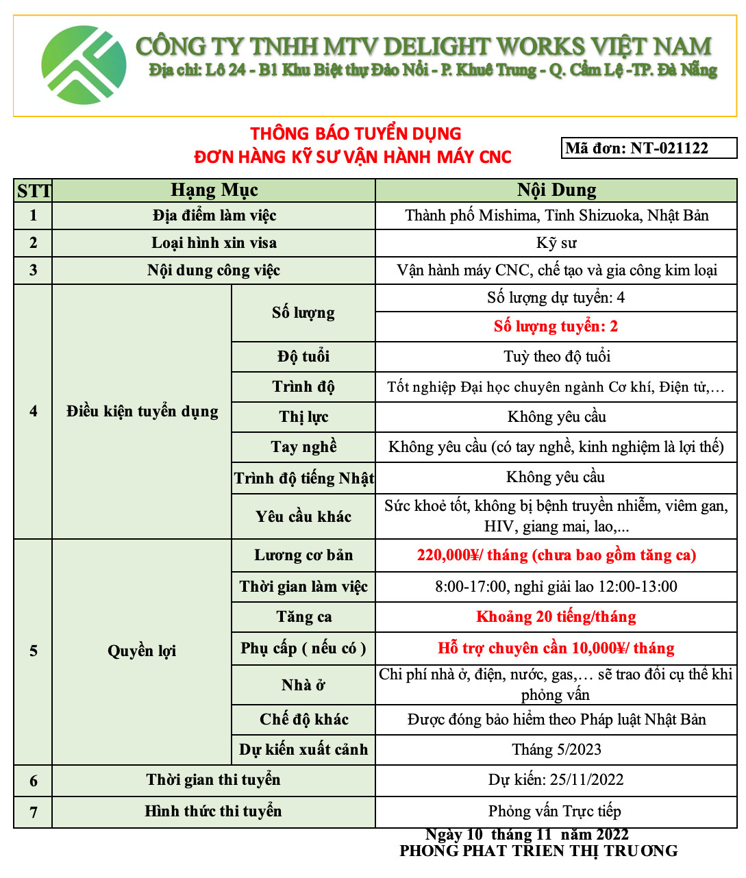 XUẤT KHẨU LAO ĐỘNG DELIGHT WORKS