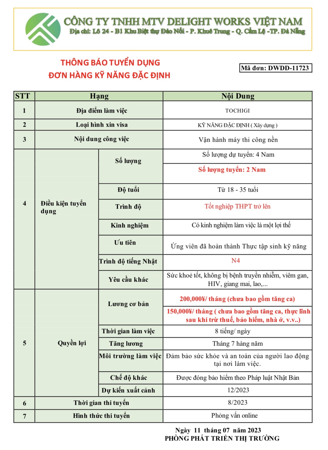 XUẤT KHẨU LAO ĐỘNG DELIGHT WORKS